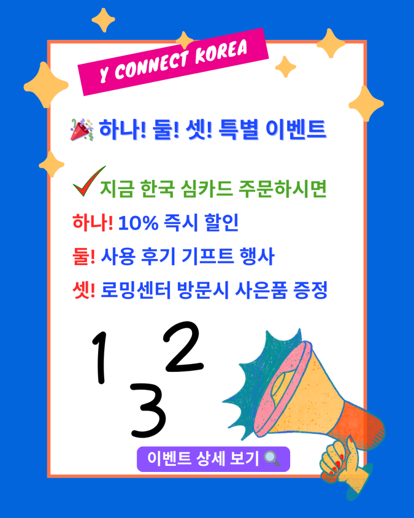 Y CONNECT KOREA 한국 심카드 사용 후기를 보내주세요!